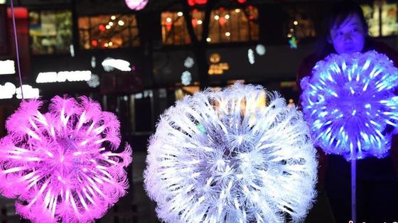 繽紛彩燈扮靚蘭州夜空如童話世界