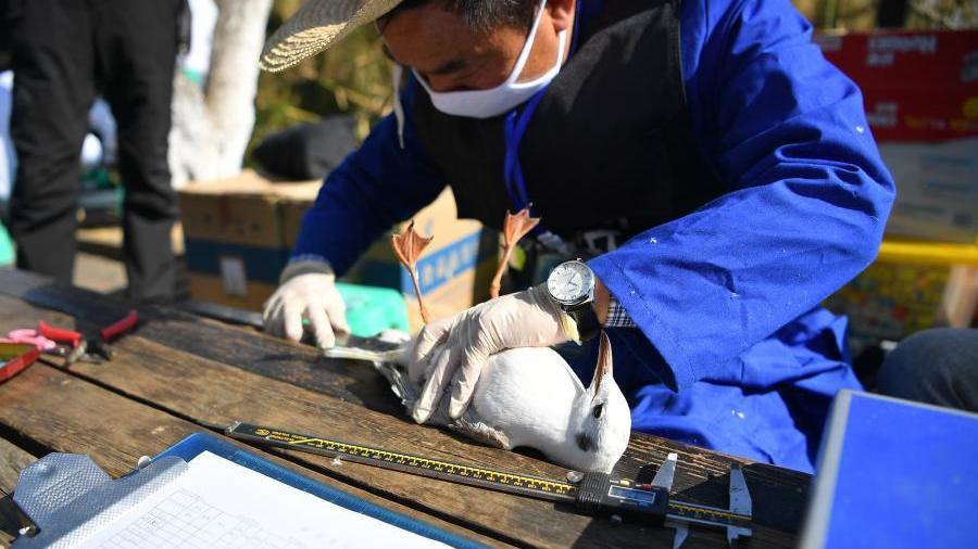當(dāng)日,昆明市瀕危動植物收容拯救中心工作人員來到滇池邊,為來昆明越冬的紅嘴鷗開展環(huán)志調(diào)查工作。