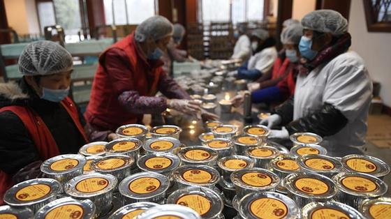 臘八節(jié)將至,河南省平頂山市魯山縣的大雷音寺熬粥供佛、向信眾施粥,祈求如意安康。