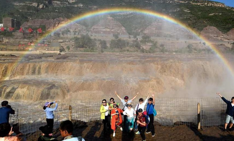 山西臨汾:黃河壺口瀑布現(xiàn)“彩虹門(mén)”景觀