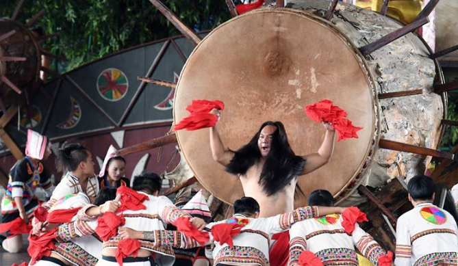 云南景洪:基諾大鼓引客來