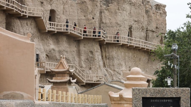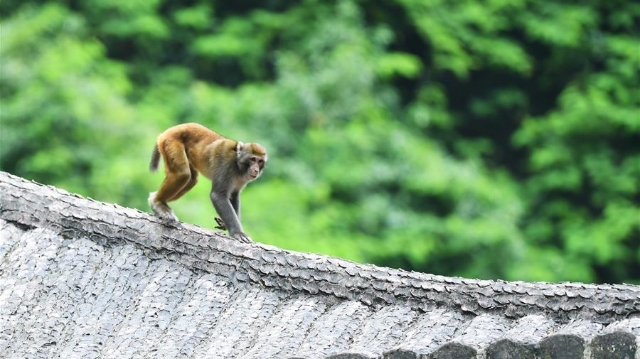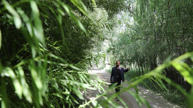 甘肅省金昌市永昌縣下四壩村村民徐文國(guó)走在林間小道上,兩旁的樹(shù)都是他15年前栽的(7月10日攝)。