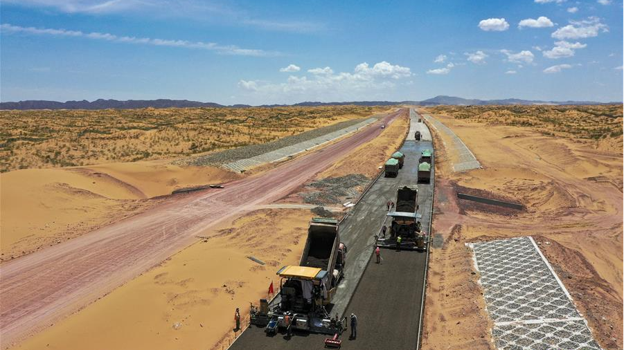 盛夏時(shí)節(jié),位于寧夏境內(nèi)的烏瑪(內(nèi)蒙古烏海市至青?,斍呖h)高速青銅峽至中衛(wèi)段正在抓緊施工建設(shè)。