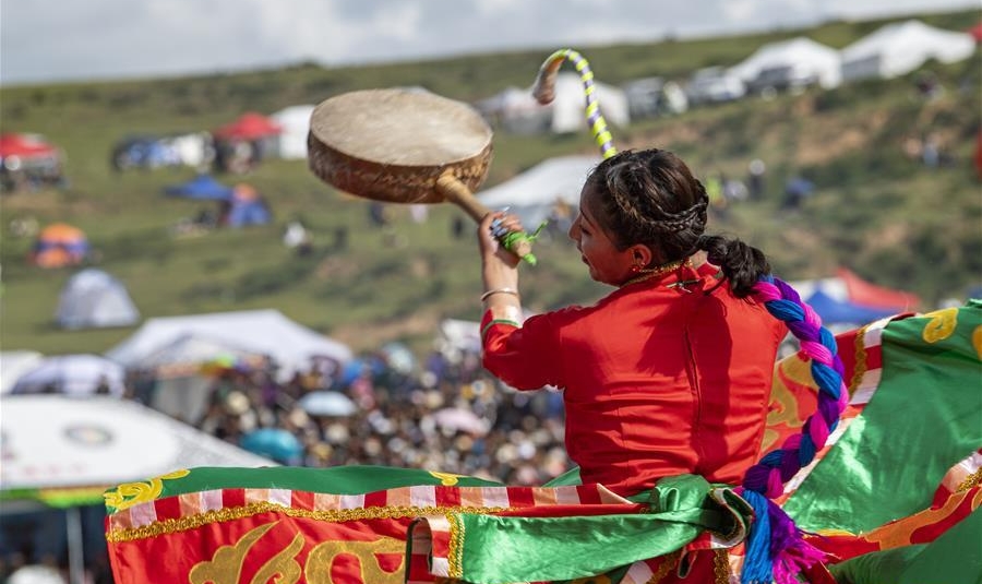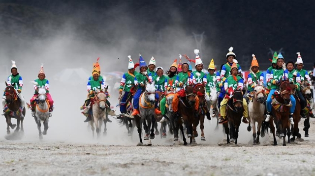 眾多演員同臺獻(xiàn)藝,表演國家級非物質(zhì)文化遺產(chǎn)弦子舞,吸引西藏各地的群眾前來觀看。