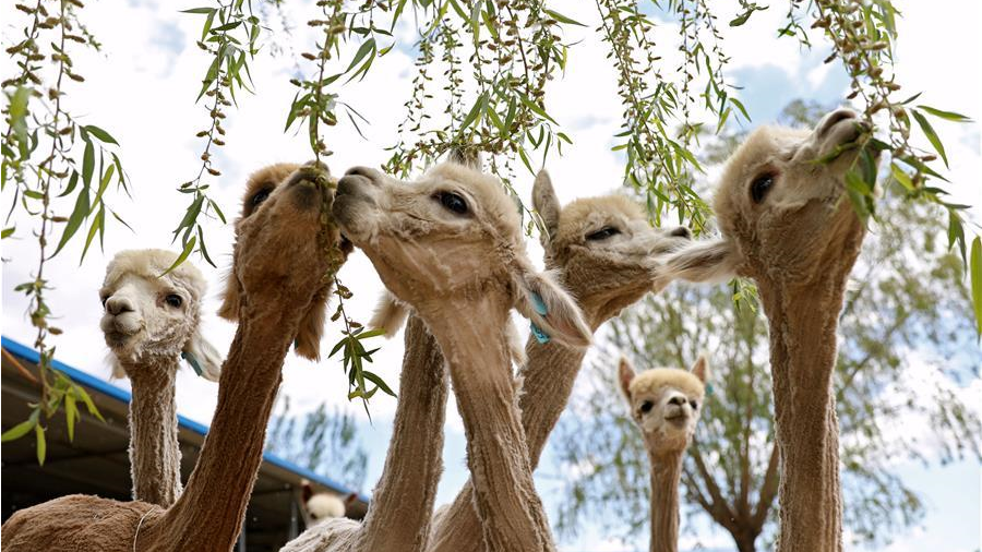 隨著天氣變暖,遼寧省臺(tái)安縣一家大型羊駝養(yǎng)殖基地里600余只羊駝集體脫掉了“毛衣”。羊駝剪下的羊駝絨經(jīng)過加工可以制成各種產(chǎn)品。
