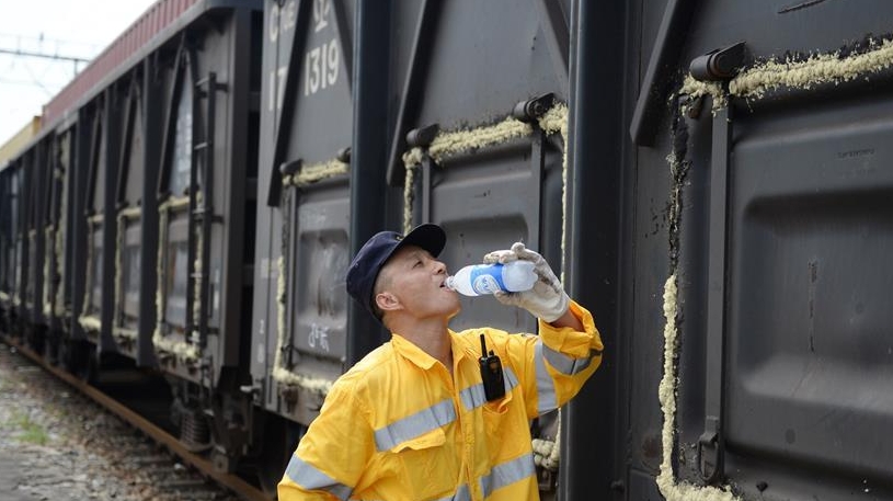 在中國鐵路上海局集團有限公司杭州北車輛段合肥運用車間,386名列車檢修工人頭頂烈日堅守崗位,確保暑運列車的安全運行。