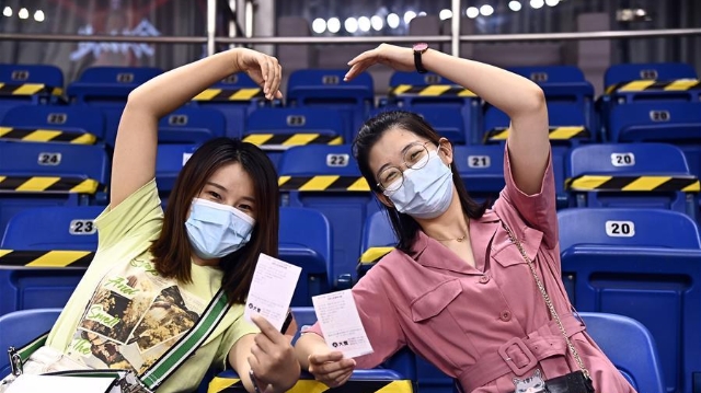 7月26日,在山東青島舉行的2019-2020賽季中國(guó)男子籃球職業(yè)聯(lián)賽(CBA)復(fù)賽第二階段(嶗山賽區(qū))比賽中,醫(yī)護(hù)人員、教師、公安戰(zhàn)線人士通過(guò)官方購(gòu)票平臺(tái),完成包括核酸檢測(cè)在內(nèi)的相關(guān)流程后進(jìn)場(chǎng)觀看了上海久事隊(duì)迎戰(zhàn)山東西王隊(duì)的比賽。 觀賽期間,觀賽者須全程佩戴口罩,對(duì)號(hào)入座,嚴(yán)格保持間隔一米就座。退場(chǎng)時(shí),觀眾須按照自后向前、先兩邊后中間的順序,保持“一米線”社交距離有序退場(chǎng)。