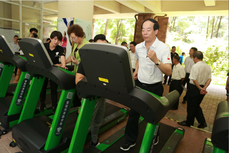 下午,調(diào)研小組來到了龍華區(qū)中航格瀾陽光花園小區(qū),實(shí)地調(diào)研該小區(qū)的共享運(yùn)動健身器材,并體驗(yàn)了該社區(qū)的智能跑步機(jī)。