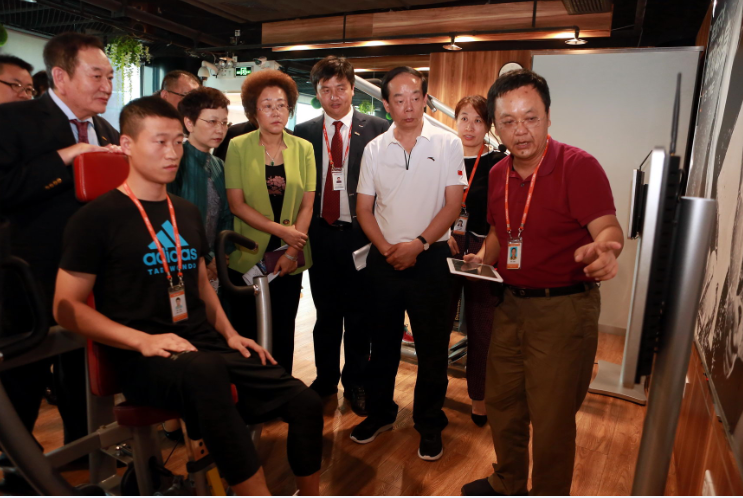 調(diào)研的最后一站選擇了位于南山區(qū)方大大廈的深圳泰山體育科技股份有限公司,調(diào)研組實(shí)地參觀調(diào)研了該公司重金研發(fā)的智能國民體質(zhì)檢測一體機(jī)和智能科學(xué)健身館。