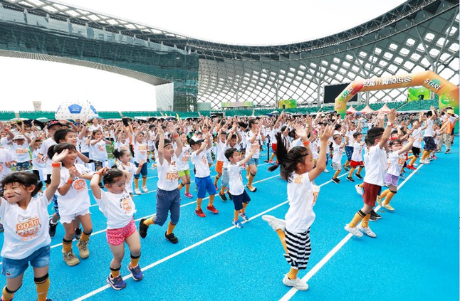 而在環(huán)球足球挑戰(zhàn)環(huán)節(jié),許多小選手是第一次接觸足球。通過數(shù)碼感應(yīng)裝置和小選手們佩戴的智能手環(huán),將帶球、頂球、射門等足球動(dòng)作實(shí)時(shí)反饋呈現(xiàn)運(yùn)動(dòng)結(jié)果,其樂無窮的項(xiàng)目讓孩子們一一挑戰(zhàn)停不下來!