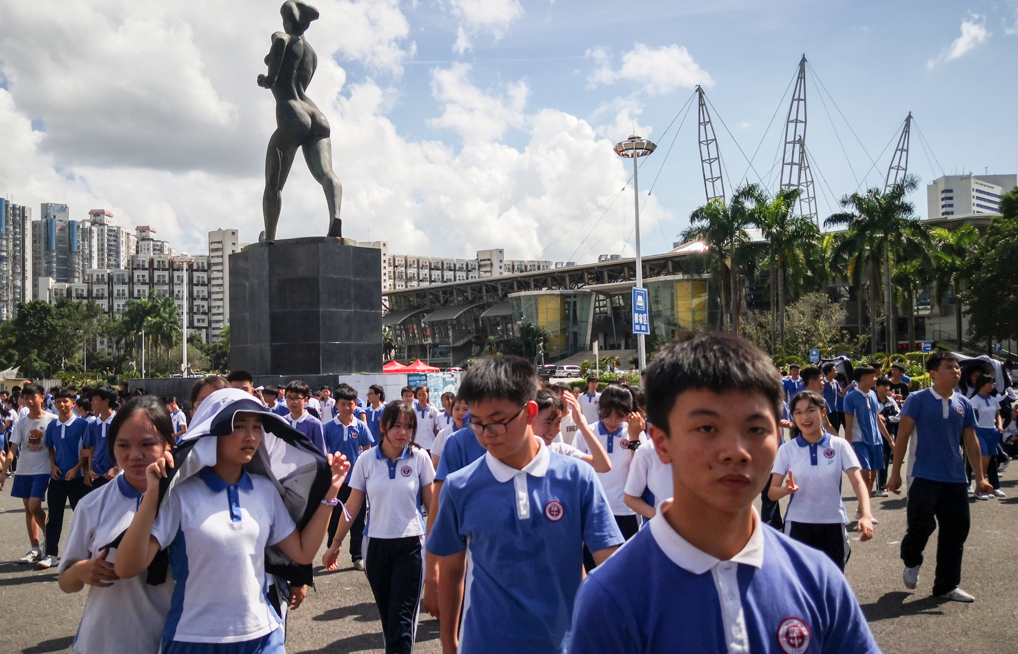 參演的600多名師生有序疏散到廣場安全區(qū)域