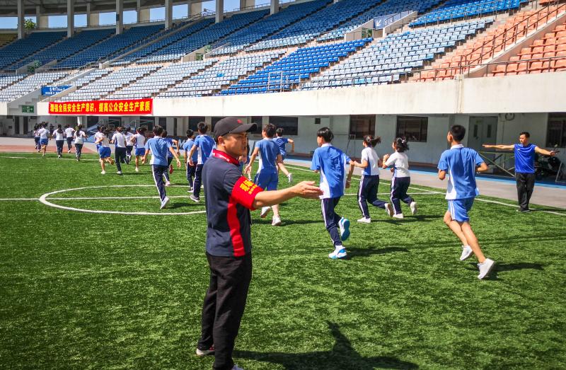 為確保本次演練到位,體育中心特別邀請了羅湖中學初中部的同學參加演練,讓孩子們有一次親身感受火災疏散的經(jīng)歷,了解火災疏散的流程,提升同學們的自救意識和技能。15:00,體育中心體育場,隨著一聲警報聲的響起各工作組在體育場播音系統(tǒng)指揮下第一時間到達指定位置,搶險求援組迅速開展消防滅火,警戒疏散組指揮在場地和看臺的學生快速、有序從就近路線撤離至廣場安全區(qū)域,并尋找是否有遺漏的學生。師生到達廣場安全區(qū)域,各班班主任清點學生人數(shù),確保學生無一人滯留,并層層上報。不到9分鐘時間,600多名羅湖中學初中部師生全部安全撤離。整個演習過程流程清晰,信息傳達準確、及時,疏散指揮反應快速,未發(fā)生學生擁擠、無序的安全隱患,演習效果理想。
