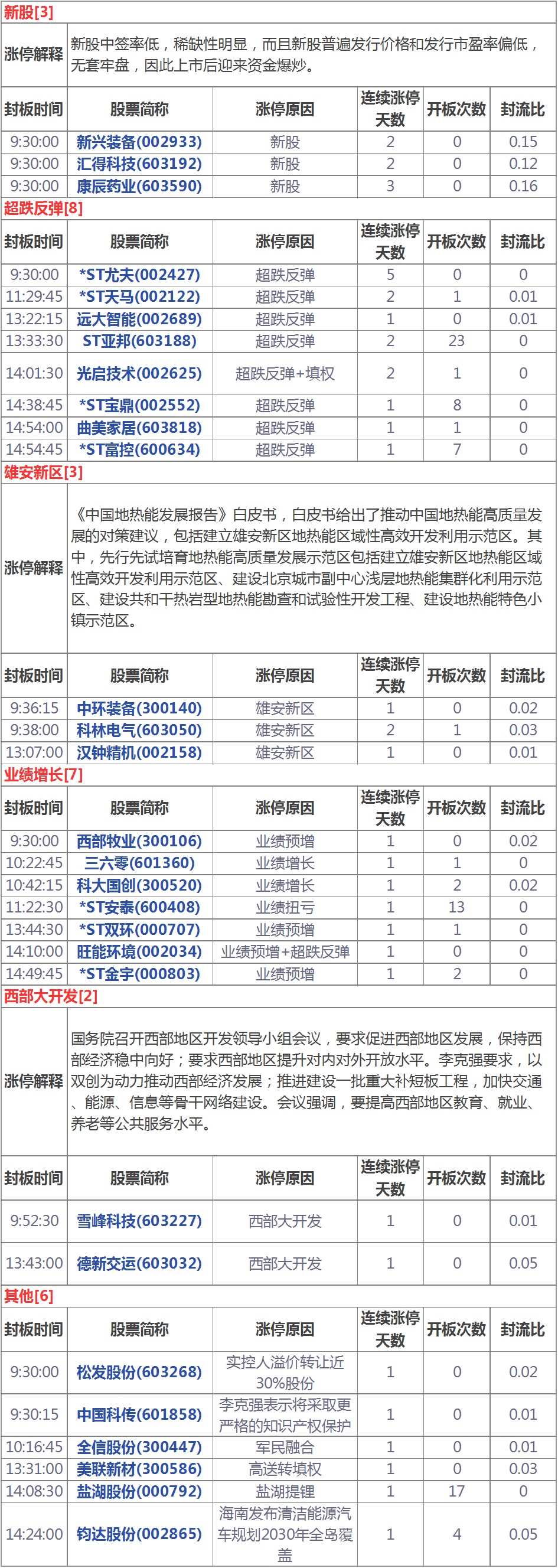 今天漲停家數(shù)較上一交易日有所減少,兩市29家漲停;跌停8家。成交量方面,滬市成交1012億元,深市成交1451億元,兩市總成交額約為2463億元,較上一交易日縮量451億元。盤面上,知識(shí)產(chǎn)權(quán)保護(hù)、養(yǎng)殖業(yè)、網(wǎng)絡(luò)安全等板塊漲幅居前;鈦白粉、高送轉(zhuǎn)、稀土永磁等板塊跌幅居前。