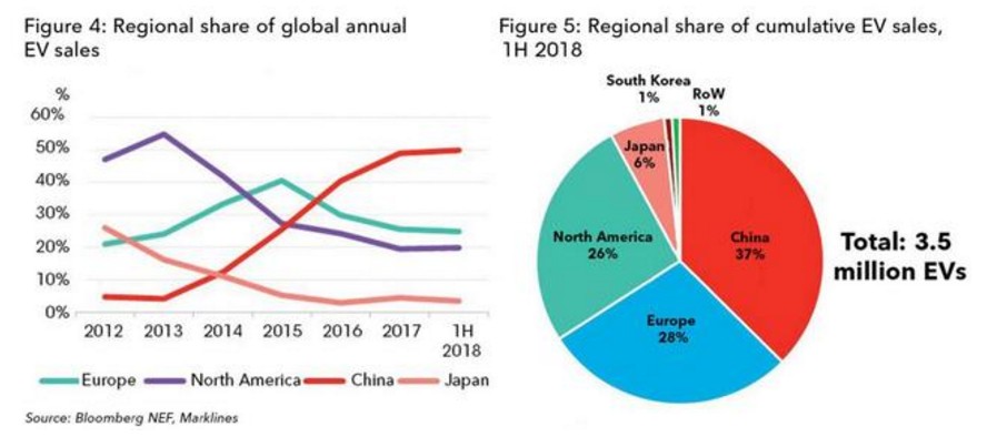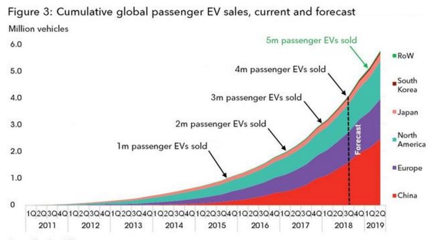 預(yù)計(jì)全球電動(dòng)車?yán)塾?jì)銷量突破500萬僅需6個(gè)月時(shí)間,即到2019年3月份。未來電動(dòng)車銷量的增長約42%的份額將會(huì)來自中國市場,而歐洲和北美則將分別貢獻(xiàn)26%和25%。(林淼)