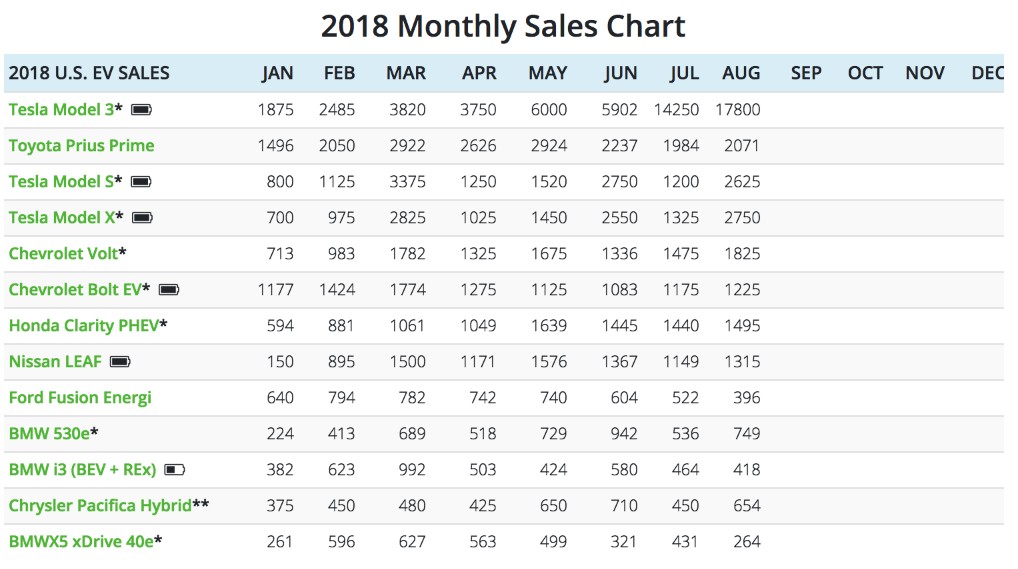智通財經(jīng)APP獲悉,據(jù)InsideEV's的數(shù)據(jù),特斯拉的Model 3、ModelS 和Model X三車型分別名列美國8月最暢銷的電動汽車的第一位、第三位和第四位。