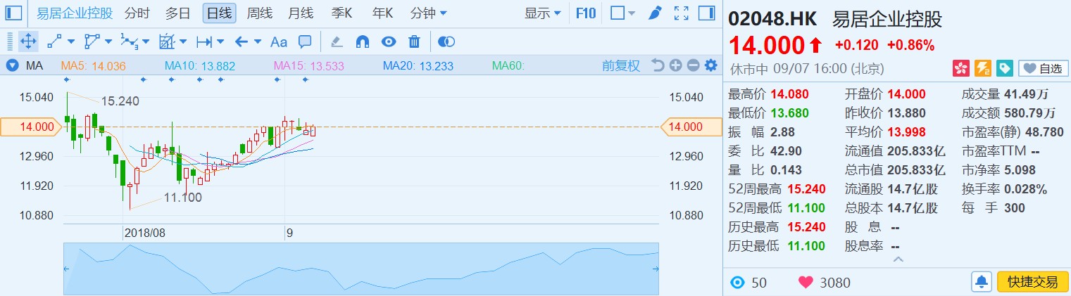 易居是國(guó)內(nèi)最大的房地產(chǎn)服務(wù)商,伴隨港股一波熱鬧非凡的上市潮,成立剛滿18年的易居于7月20日風(fēng)風(fēng)火火上市,之后也在新股“破發(fā)潮”中慘遭錯(cuò)殺,一度下探至11.1港元,但價(jià)值總會(huì)回歸,隨著易居的商業(yè)模式和業(yè)績(jī)被市場(chǎng)認(rèn)可,股價(jià)逐步回升。