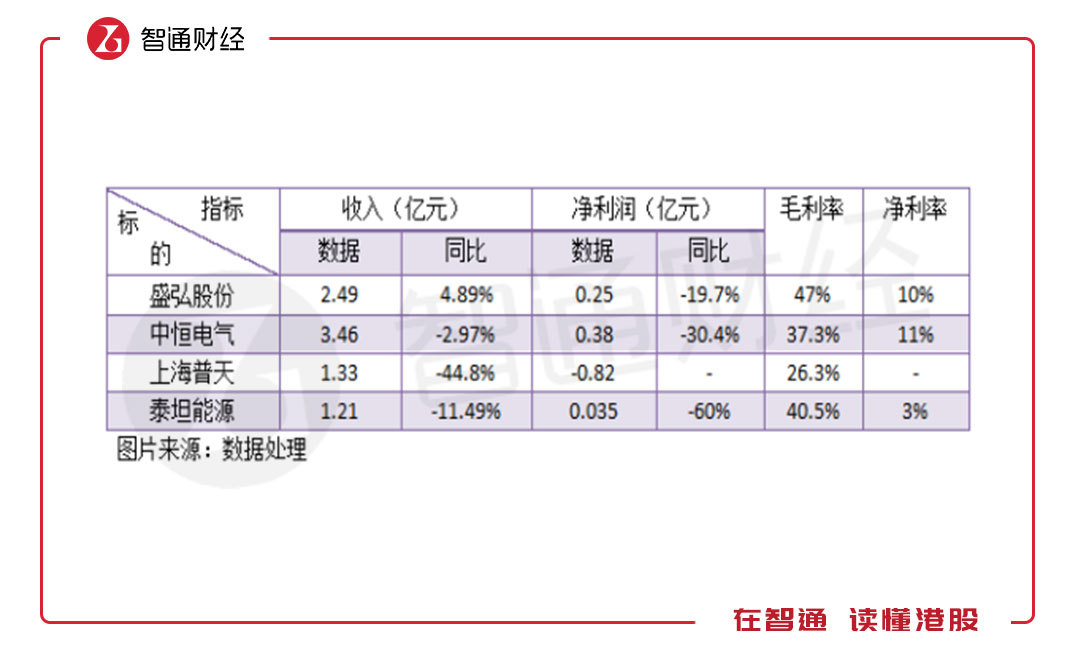 中游設(shè)備供應(yīng)商中,包括A股上市公司盛宏股份、中恒電氣、上海普天以及港股唯一一家充電樁供應(yīng)商泰坦能源技術(shù)(02188)。從收入及利潤(rùn)數(shù)據(jù)上看,2018年上半年參與者收入和凈利潤(rùn)均呈現(xiàn)較大幅度下滑,凄慘的很,要知道新能源汽車銷量增長(zhǎng)了一倍多,且參與者的利潤(rùn)率也很低。