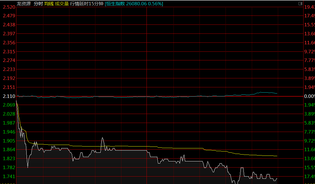 龍資源(01712)上市次日,股價破發(fā),截至9時50分,跌10.43%,報價1.89港元,成交額341.49萬。