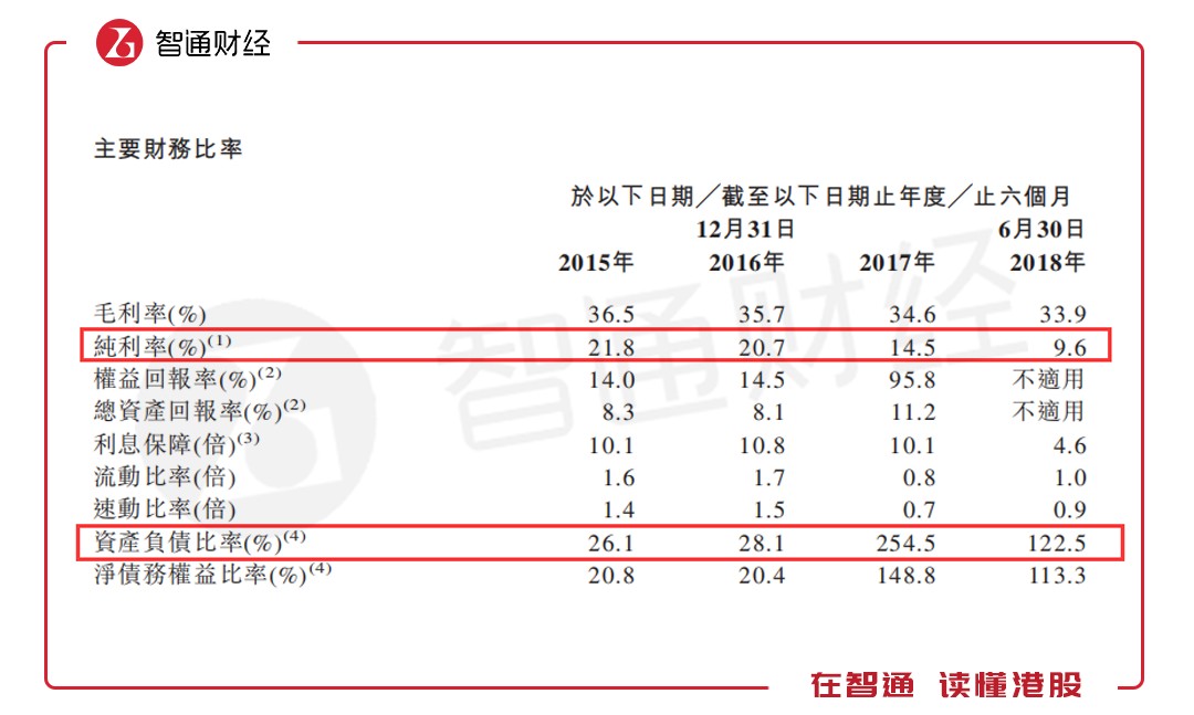 此外,由于公司在2018年上半年發(fā)行了約6460萬元的股份,致使公司總權益增加從而降低了負債率。但截至2018年6月30日公司的資產(chǎn)負債比率依然高達122.5%,其流動比率僅為1倍也顯示公司流動資金并不寬裕。