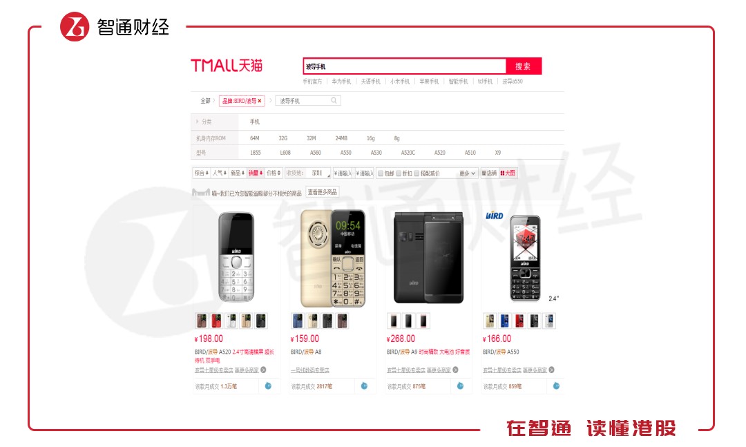 當(dāng)然,也有部分手機(jī)品牌存活下來(lái)的,比如1992年成立的波導(dǎo)手機(jī),以及2002年成立的天語(yǔ)手機(jī),其中波導(dǎo)手機(jī)在2004-2005創(chuàng)造輝煌,當(dāng)時(shí)年銷(xiāo)售突破1000萬(wàn)臺(tái),但2006年后市場(chǎng)份額急速下降,目前雖有機(jī)型在賣(mài),但少人問(wèn)津。在天貓上,波導(dǎo)手機(jī)最大的月成交筆數(shù)為1.3萬(wàn)筆,天語(yǔ)手機(jī)為4萬(wàn)筆。
