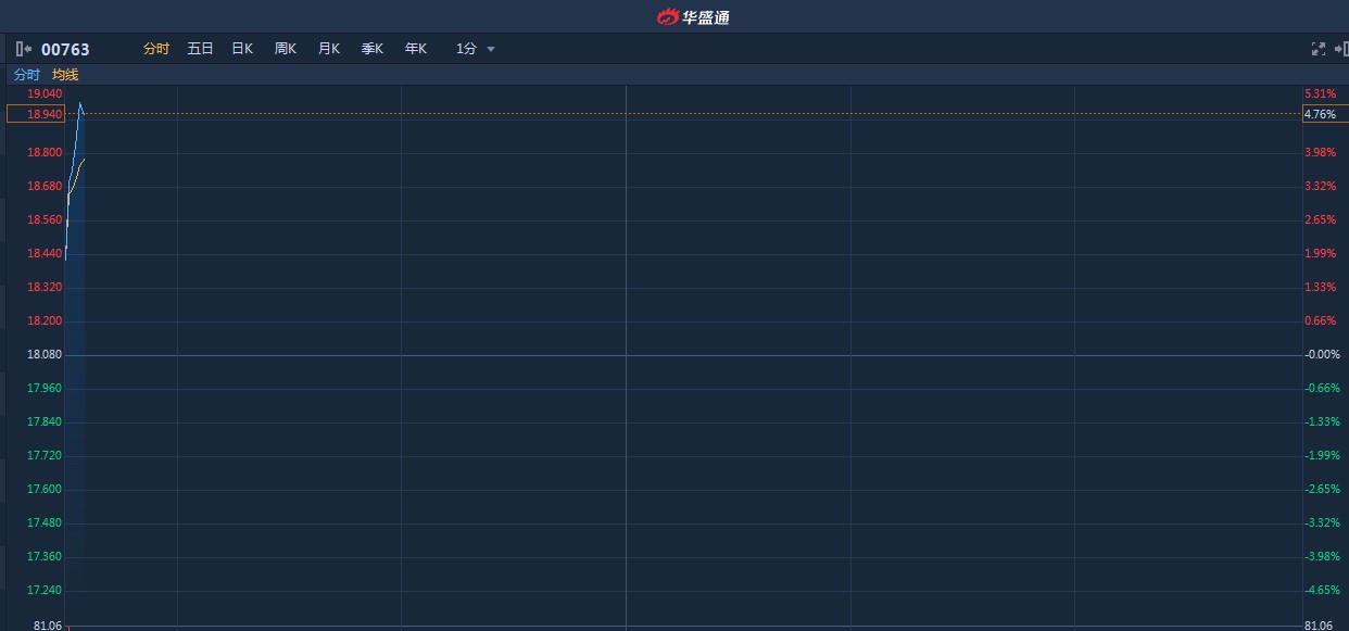 智通財經(jīng)APP獲悉,英國確認華為可用,中興通訊(00763)早盤股價直線拉漲,截至9時34分,漲4.98%,報價18.98港元,成交額3912萬。