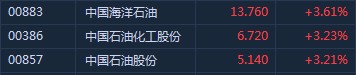 智通財(cái)經(jīng)APP獲悉,受國際原油價(jià)格持續(xù)走高刺激,港股石油股全線大漲。截至9時(shí)55分,中海油(00883)漲3.61%,報(bào)價(jià)13.76港元,中石化(00386)漲3.23%,中石油(00857)漲3.21%。