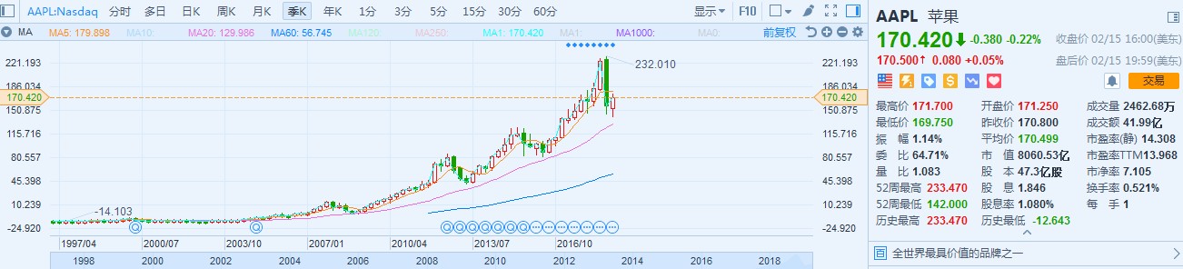 在第四季度,除了伯克希爾之外,索羅斯、對沖基金Jana Partners、瑞銀、老虎全球管理公司等也清倉或減持了蘋果。蘋果看似已成為遭人嫌棄的股票,但另一組數(shù)據(jù)表明,這并不是真相的全部。