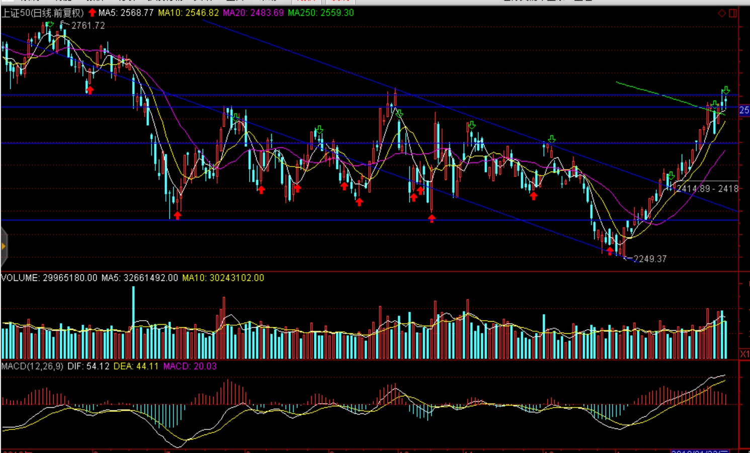 操作建議:短期受阻密集成交壓力,短期上行空間有限,謹(jǐn)慎受阻大幅回撤;滬綜指2770--2790點區(qū)間、創(chuàng)業(yè)板1430點一線、上證50于2600點一線存在壓力,建議加大調(diào)倉力度,棄高就低,逢高減倉大幅炒高品種、適度關(guān)注補(bǔ)漲品種。