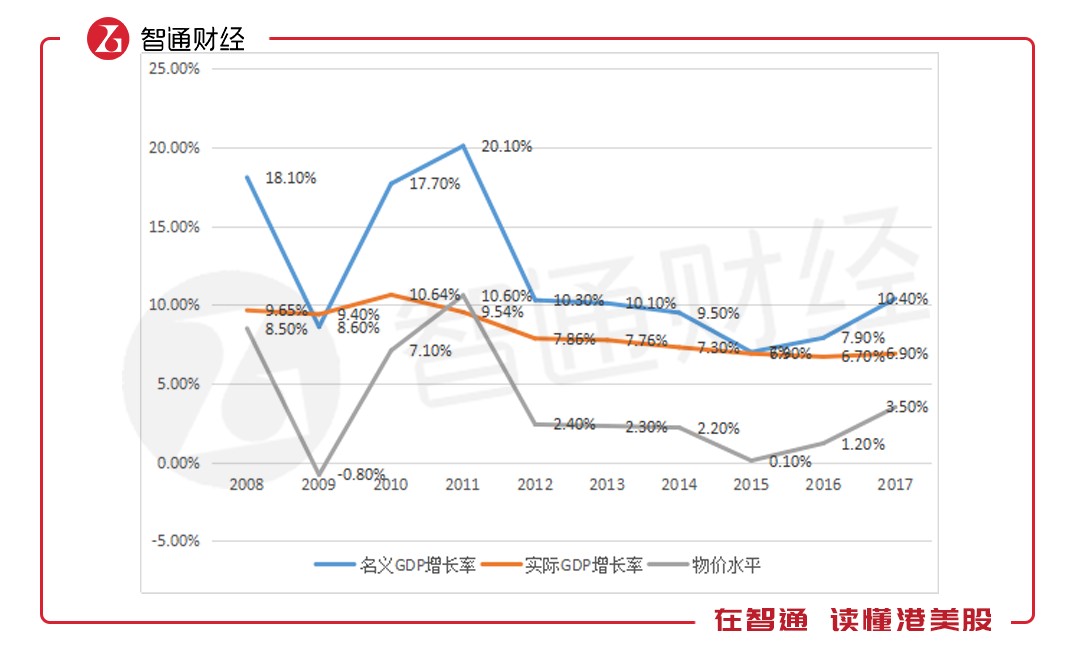 但考慮到物價(jià)水平的變化,此時(shí)農(nóng)村的消費(fèi)水平并不能代表購買力水平,智通財(cái)經(jīng)APP以實(shí)際GDP增長水平和名義GDP增長水平測算每一年的物價(jià)水平(物價(jià)水平=名義GDP增長水平-實(shí)際GDP增長水平),以下為測算圖表: