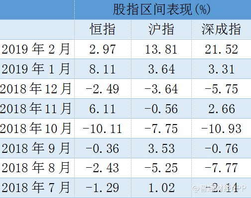 截至發(fā)稿,恒指2月累計(jì)上漲2.97%,同期滬指、深成指分別上漲13.81%與21.52%。下圖統(tǒng)計(jì)了去年6月至今年2月的主要股指區(qū)間表現(xiàn),可以看到,今年開(kāi)年以來(lái),兩地市場(chǎng)的表現(xiàn)幾乎可以用“靚眼”來(lái)形容。