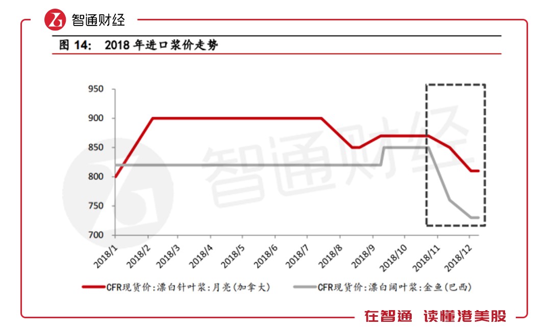 紙漿方面,據(jù)智通財(cái)經(jīng)APP了解,隨著境外大型漿企集中度提升,價(jià)格控制能力加強(qiáng),有助于漿價(jià)的穩(wěn)定。在需求端,有券商預(yù)計(jì),2019年新增總需求約200萬(wàn)噸,短期將以去庫(kù)存為主,漿價(jià)會(huì)面臨下行壓力,而長(zhǎng)期由于全球供需平衡,紙漿價(jià)格將維持平穩(wěn)。