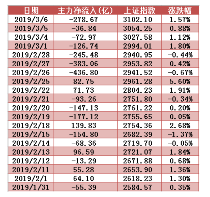 近20個(gè)交易日兩市主力資金凈流入額變動圖表: