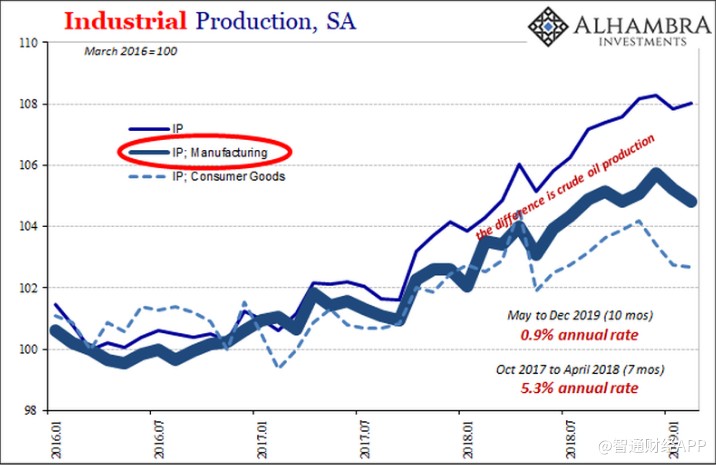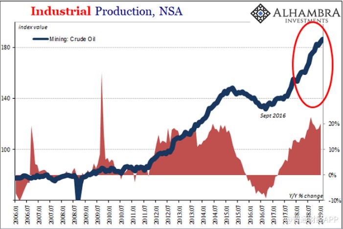 一個(gè)重要原因就是石油。美國國內(nèi)能源生產(chǎn)繼續(xù)推動(dòng)整個(gè)行業(yè)。根據(jù)最新的估計(jì),美國工業(yè)生產(chǎn)在過去幾個(gè)月,即2018年12月、2019年1月和2月出現(xiàn)整體下滑。相比之下,德國已經(jīng)增速放緩了至少9個(gè)月。