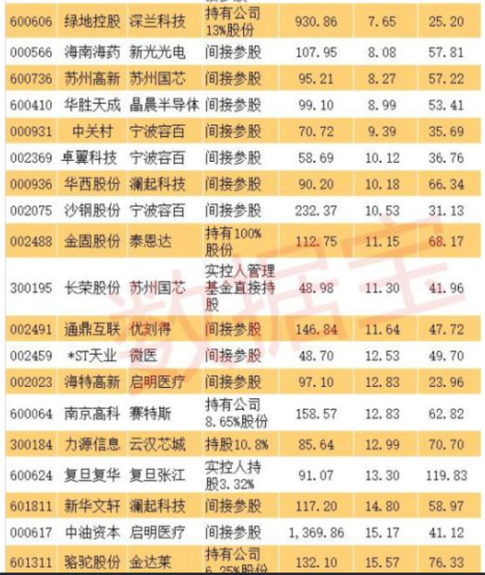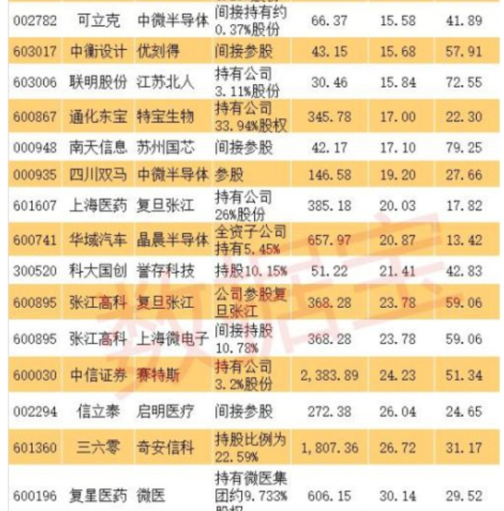 科創(chuàng)板影子股:首批創(chuàng)業(yè)板潛在公司背后有超過50只影子股,而這些影子股大多是間接持股。從持股比例來看,最大的是金固股份,持有泰恩達(dá)100%股權(quán)。其他影子股持股比例較大的還有,通化東寶持有33.94%特寶生物、上海醫(yī)藥持有26%復(fù)旦張江、三六零持有22.59%奇安信科、張江高科間接持有10.78%上海微電子、綠地控股持有13%深蘭科技、力源信息持有10.8%云漢芯城、科大國創(chuàng)持有10.15%譽存科技、南京高科持有8.65%賽特斯、駱駝股份持有6.25%金達(dá)萊等。