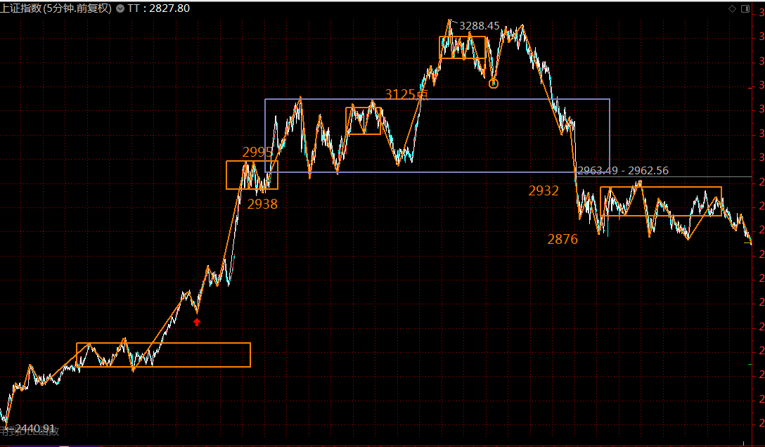 下圖為上證指數(shù)五分鐘級別走勢結(jié)構(gòu)。短線看,上證指數(shù)這段從2934點開始的回落線段,已進入空頭陷阱區(qū)域,本周初將完成下方五分鐘中樞的第一類買點構(gòu)造,突破2940點之后,上漲趨勢將開啟,目標3050-3100之間。