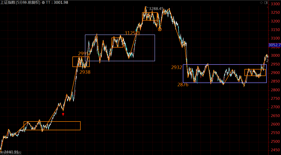 下圖為上證指數(shù)五分鐘級別走勢結(jié)構(gòu)。目前已正式突破5月6日開始構(gòu)建的三十分鐘中樞,目前在5分鐘的上漲趨勢中,未有結(jié)束的征兆,投資者宜全力做多,直至出現(xiàn)五分鐘上漲趨勢背馳為止,按壓力位看,大約在3050點附近。風(fēng)險控制線2932點。