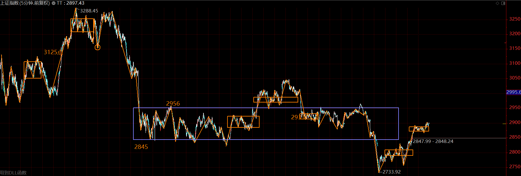 結(jié)合周五盤后的消息,這里五分鐘的上漲趨勢應(yīng)該已經(jīng)結(jié)束,市場強(qiáng)于預(yù)期,并沒有在中樞下方結(jié)束這段上漲趨勢,而且在中樞的中部,回落后,如果不創(chuàng)新低,則構(gòu)成大級別的二買,中期大行情可期。短期這里可能會面臨一波回落,周一早盤如果開在2845上方,則可持股不動,如果低于2845點,則可在上拉時適度減倉,后續(xù)在2733與2800之間擇機(jī)回補(bǔ)。