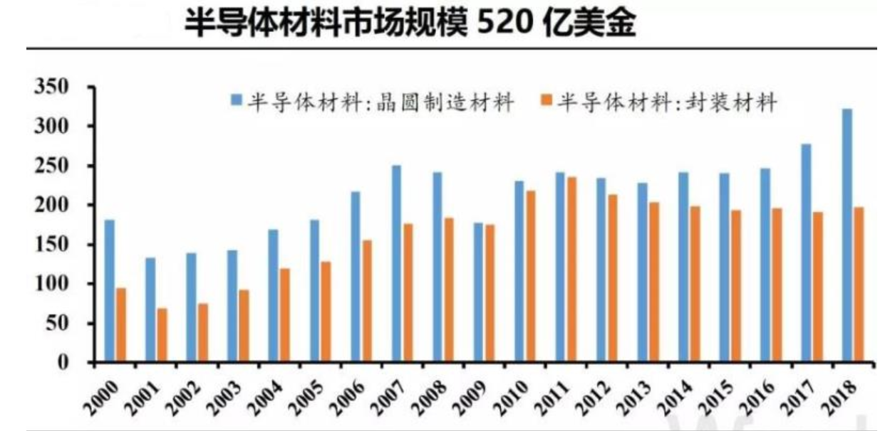 中國大陸和中國臺(tái)灣為全球半導(dǎo)體材料主要市場,未來需求將持續(xù)增加。至2018年,中國臺(tái)灣和中國大陸半導(dǎo)體材料市場分別為790億元和582億元,在全球占比分別為22.0%和16.3%,合計(jì)共38.3%。未來隨著晶圓廠投產(chǎn)量持續(xù)增加,市場規(guī)模將進(jìn)一步擴(kuò)大。