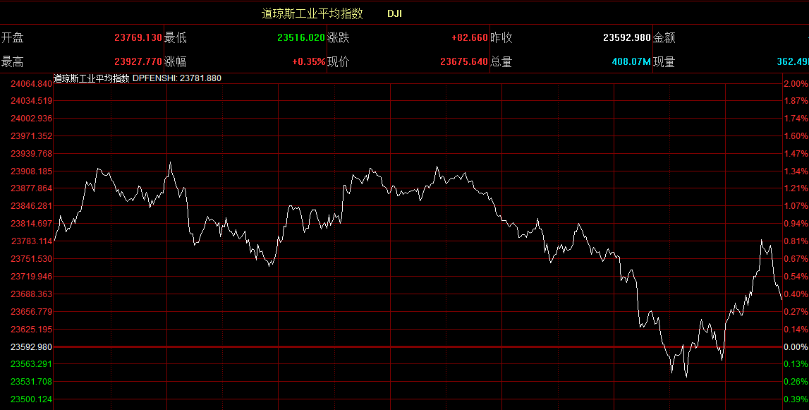 美股周二表現(xiàn)反覆,道指至中段表現(xiàn)一直向好,最多曾升逾330點(diǎn),但到尾市曾短時(shí)間倒跌,全日收?qǐng)?bào)23675點(diǎn),升82點(diǎn)或0.35%;標(biāo)指收?qǐng)?bào)2546點(diǎn),升少于1點(diǎn);納指收?qǐng)?bào)6783點(diǎn),升30點(diǎn)或0.45%。