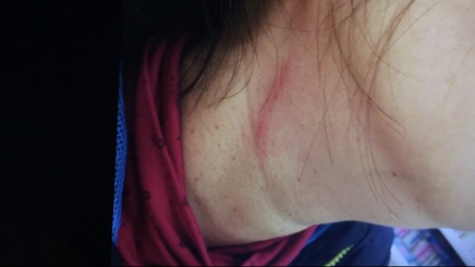 事后,羅小姐的母親張女士很快打電話報(bào)了警。張女士今年52歲,女兒提到母親的傷勢(shì)非常心疼,“我母親頭部腫起,脖子上有三處抓痕(有出血),手指也被抓傷,之后幾天右側(cè)腰部和右膝都感覺疼痛。”