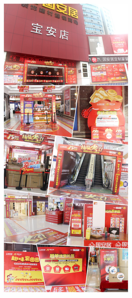 如今,國安居15周年大慶的消息已傳遍鵬鵝兩城。11重優(yōu)惠成為眾多裝修業(yè)主的福音,目前,各分店全部張燈結(jié)彩煥然一新,高掛巨幅折扣牌,各環(huán)節(jié)的獎(jiǎng)品堆積如山,戶外廣告鋪天蓋地,有圖有真相。