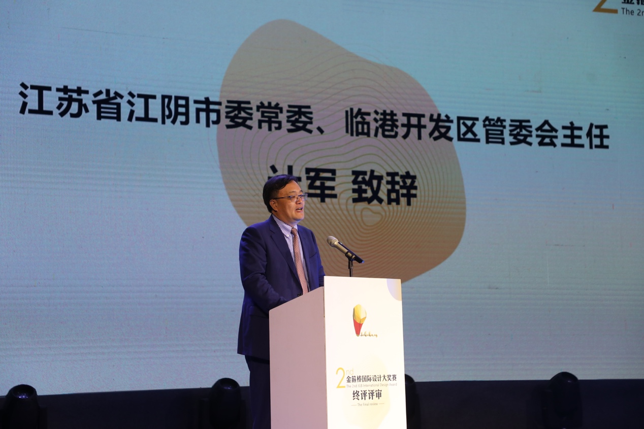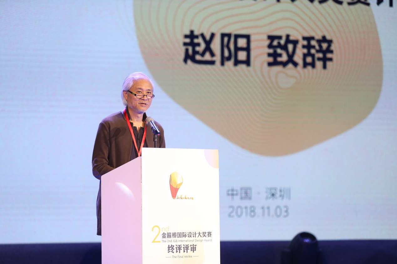 大賽主任評委、中國美術學院工業(yè)設計專業(yè)創(chuàng)始人及學科帶頭人趙陽教授也登臺致辭。趙陽教授回顧了與江陰、與金箍棒設計的淵源,高度贊揚了本屆大賽倡導質樸生活、注重設計落地的理念,并預祝比賽成功。