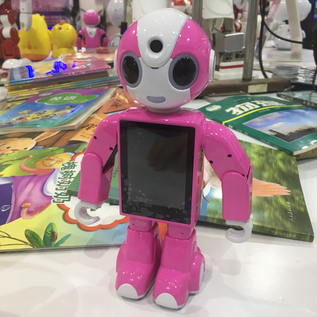 人形智能機(jī)器人小E。唱得了歌,跳得了舞,聊得了天,打得了拳,可以聲控控制家電,安防監(jiān)護(hù)家庭,視頻通話(huà)聊天,百科知識(shí)學(xué)習(xí),APP控制、3D可視化動(dòng)作編程等功能。
