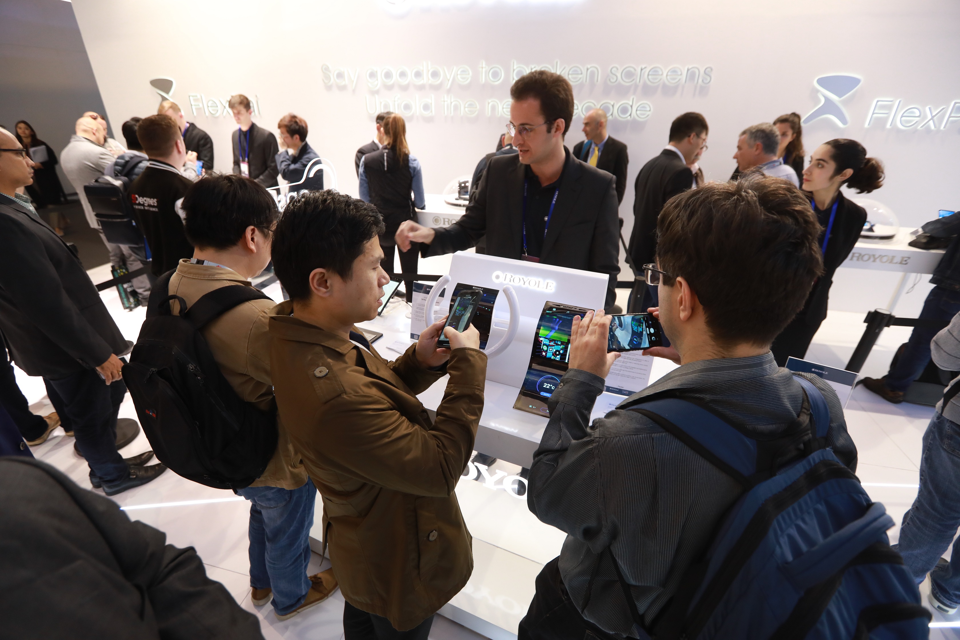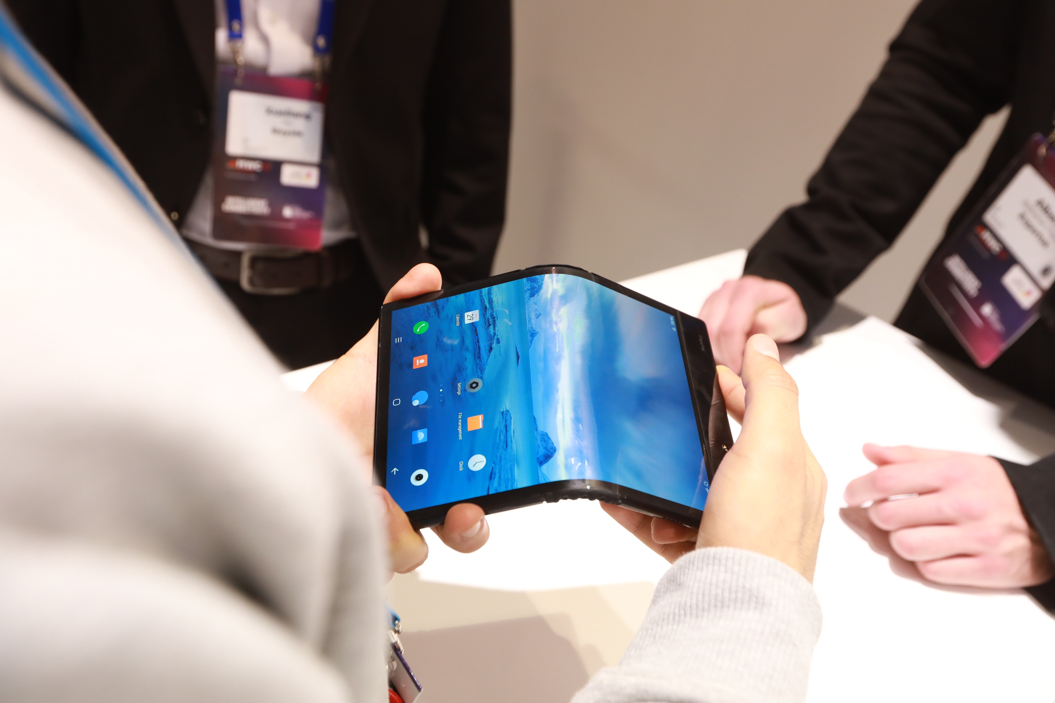 折疊屏手機作為今年MWC的熱點之一。柔宇科技現(xiàn)場展出一大批全球首款可折疊柔性屏手機FlexPai柔派,沒有玻璃柜緊鎖,沒有高大安保人員嚴密看管,參展客戶可在柔宇展位隨意上手體驗折疊屏手機柔派的多種功能,多次折疊、鏡像拍照、大屏游戲等等均可自由嘗試。