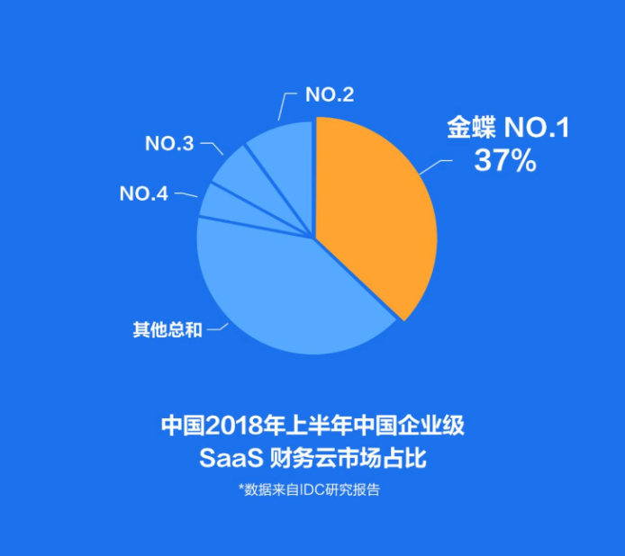 IDC報(bào)告披露,2018年上半年中國SaaS廠商銷售收入占比,金蝶繼續(xù)保持第一。