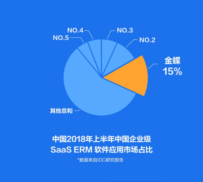 IDC 《中國半年度企業(yè)級(jí) S aaS ERM 應(yīng)用軟件市場跟蹤報(bào)告》,金蝶在2018上半年 SaaS ERM 和 SaaS 財(cái)務(wù) 云 市場 占比繼續(xù)蟬聯(lián)第一。