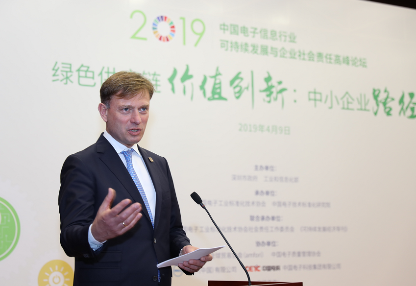 深圳新聞網(wǎng)4月10日訊 4月9日,“中國電子信息行業(yè)2019可持續(xù)發(fā)展與企業(yè)社會責(zé)任高峰論壇”在深圳會展中心成功舉行。本次會議由深圳市政府、工業(yè)和信息化部主辦,中國電子工業(yè)標(biāo)準(zhǔn)化技術(shù)協(xié)會、中國電子技術(shù)標(biāo)準(zhǔn)化研究院承辦,中國電子工業(yè)標(biāo)準(zhǔn)化技術(shù)協(xié)會社會責(zé)任工作委員會、《可持續(xù)發(fā)展經(jīng)濟導(dǎo)刊》(原《WTO經(jīng)濟導(dǎo)刊》)聯(lián)合承辦,全球貿(mào)易協(xié)會(amfori)、中國電子質(zhì)量管理協(xié)會、戴爾(中國)有限公司、中國電子科技集團有限公司協(xié)辦,論壇還得到了深圳市創(chuàng)新企業(yè)社會責(zé)任促進中心和責(zé)揚天下(北京)管理顧問有限公司的大力支持。