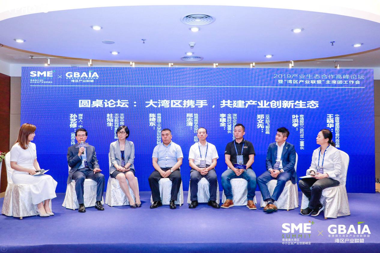 在“圓桌論壇”環(huán)節(jié)中,灣區(qū)產(chǎn)業(yè)聯(lián)盟副秘書長孫藝修作為對話主持人,與現(xiàn)場來自產(chǎn)業(yè)平臺、科研院校、上市公司、創(chuàng)新企業(yè)、獨角獸、金融資本的7位對話嘉賓以《大灣區(qū)攜手,共建產(chǎn)業(yè)創(chuàng)新生態(tài)》為主題,共同探討灣區(qū)產(chǎn)業(yè)創(chuàng)新生態(tài)的共建與合作共贏。