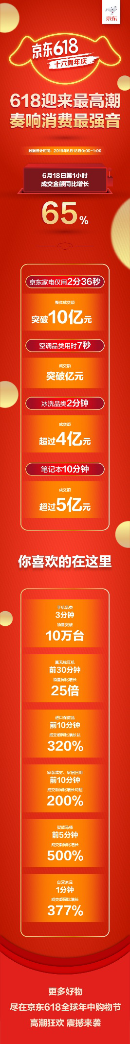 第一小時(shí)成交金額同比增長65%京東618奏響消費(fèi)最強(qiáng)音
