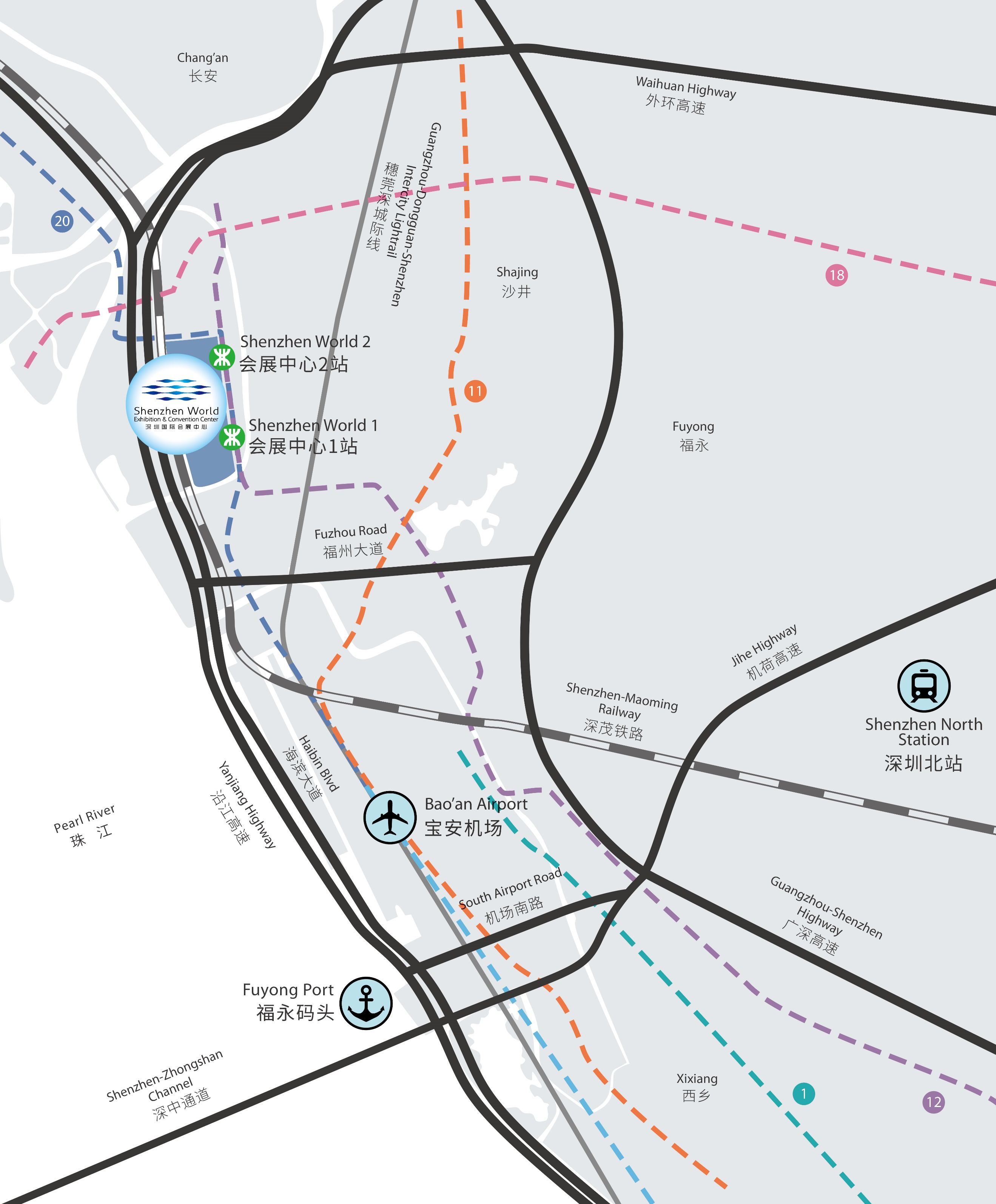 (圖:深圳國際會展中心周邊交通示意圖)